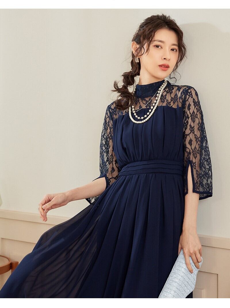 お袖のレース感がエレガントなパーティードレス。