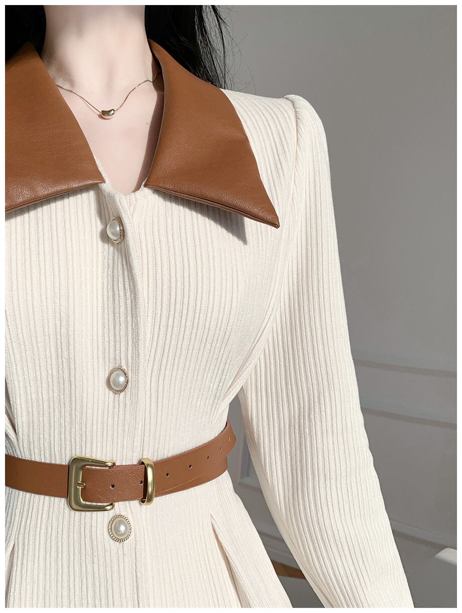 襟とウエストがフェイクレザーになったおしゃれ度高めのワンピース。