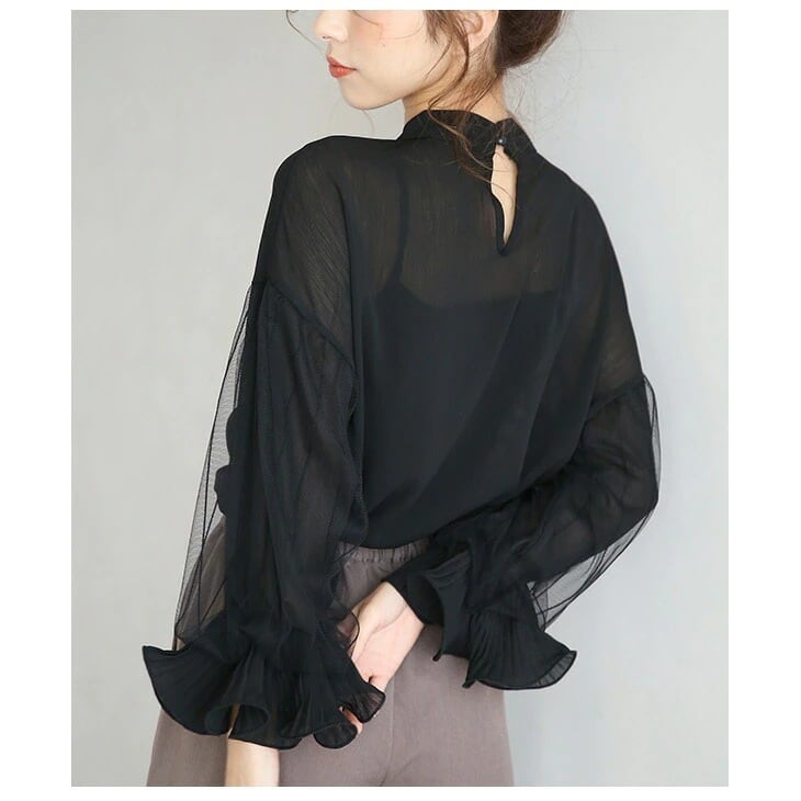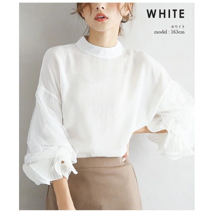 ボリューミーなシアー袖が大人可愛いブラウス。