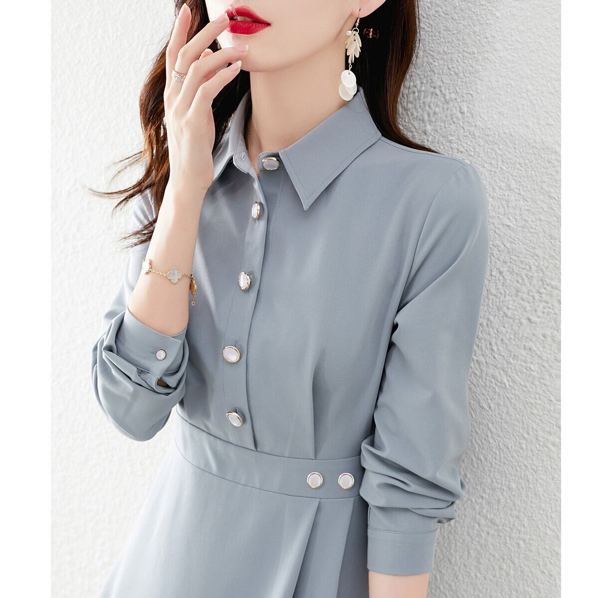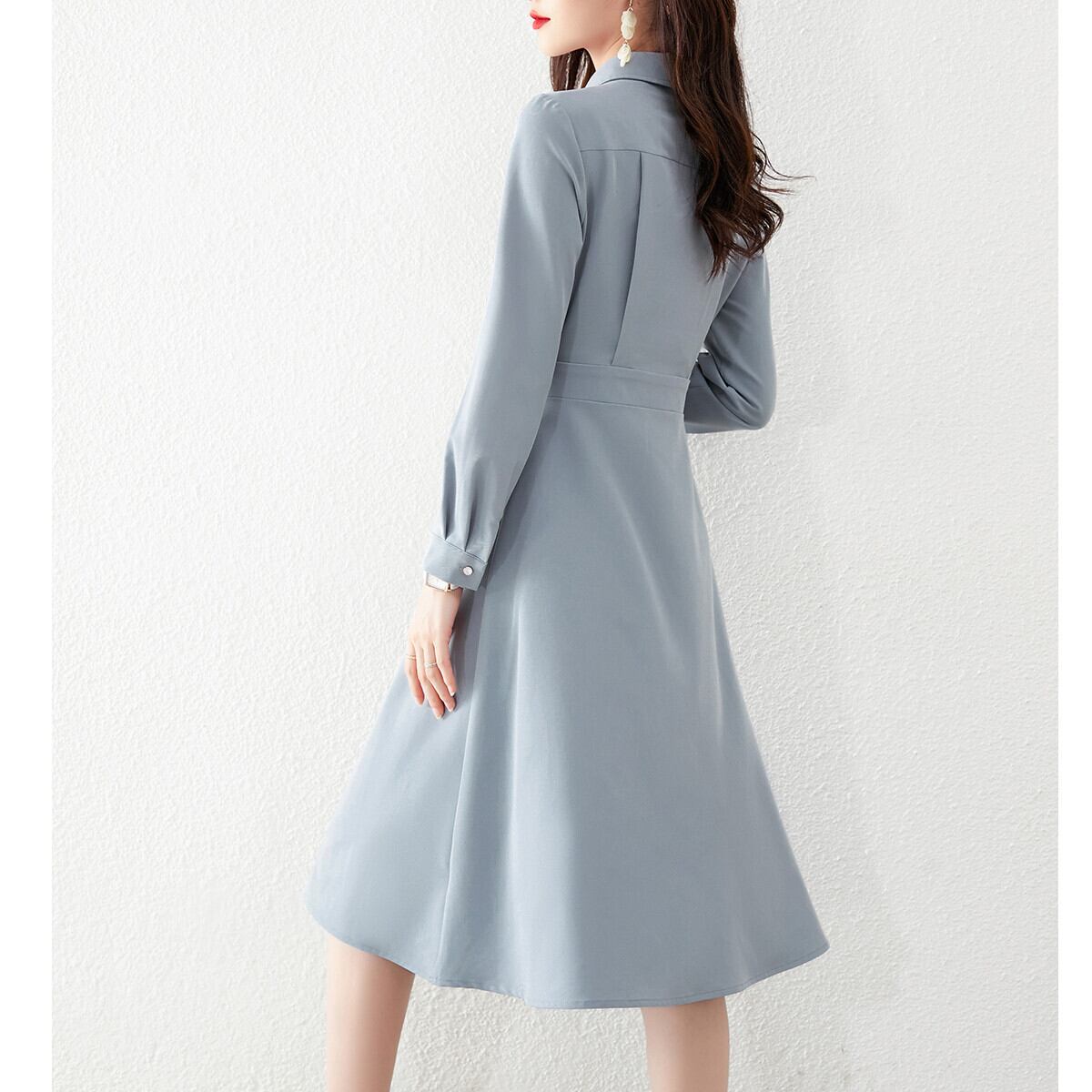 【ワンピース】 ワンピース レディース おしゃれ 20代 30代 40代 ワンピース 春 秋 冬 お食事会 ミディ丈 膝下 ひざ下 ワンピース 秋冬 長袖 20代 30代 40代 シャツ ワンピース 韓国 ワンピース ドレス ワンピース 大人 可愛い きれいめ レトロ ヘイズブルー 青 S M L XL