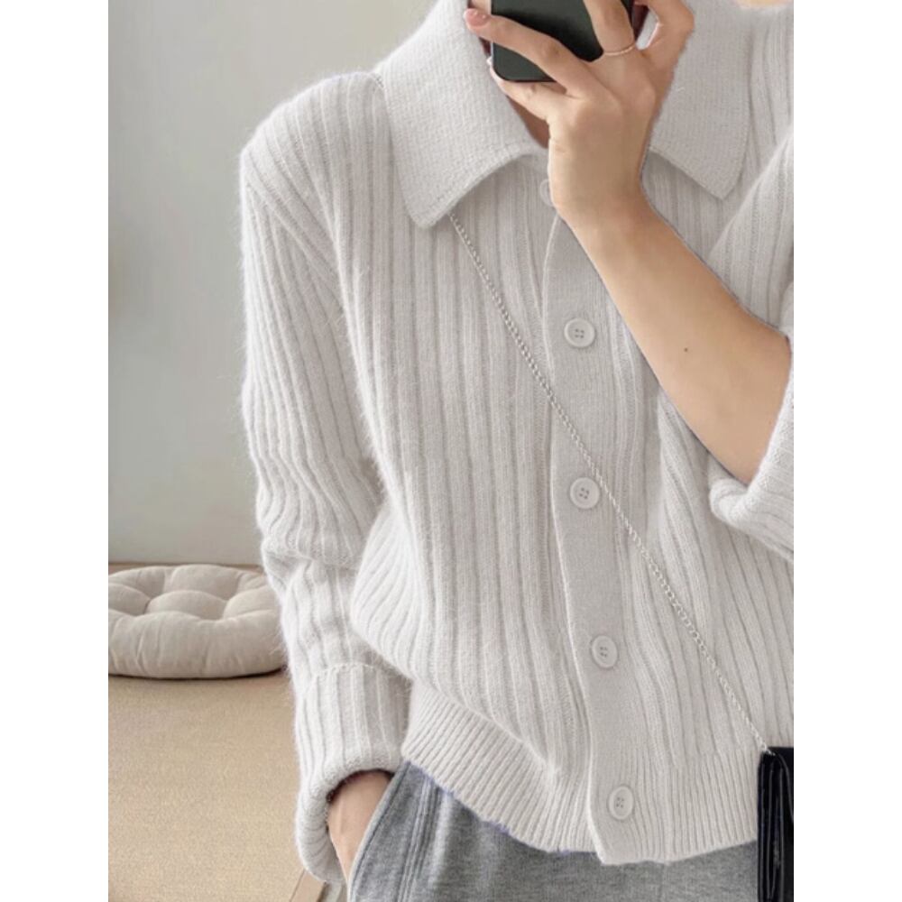 ポロ襟の大人可愛いシンプルなカーディガン。
