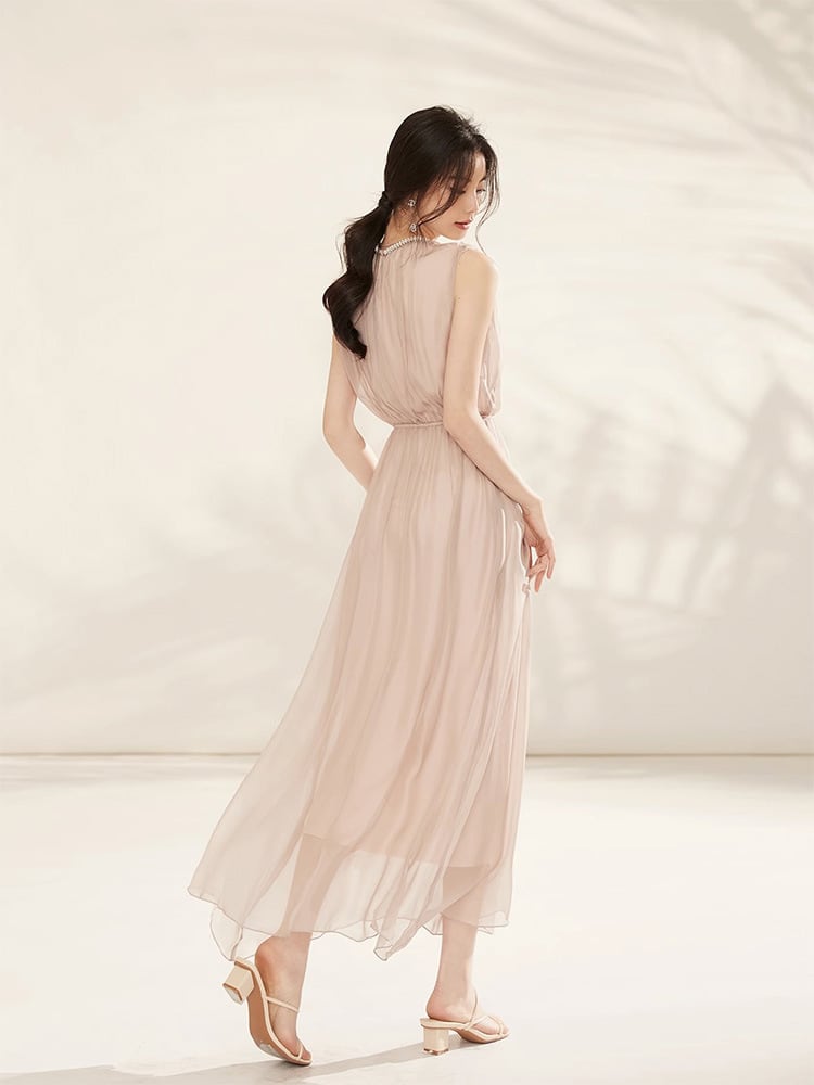 【パーティードレス】パーティードレス 結婚式 お呼ばれ ドレス 結婚式のお呼ばれ お呼ばれ ワンピース ベージュ ロングワンピース 20代 30代 40代 お食事会 顔合わせ 婚活 フォーマルドレス 袖なし ノースリーブ ロング 体型カバー お呼ばれ 二次会 フォーマルワンピース シンプル おしゃれ S M L