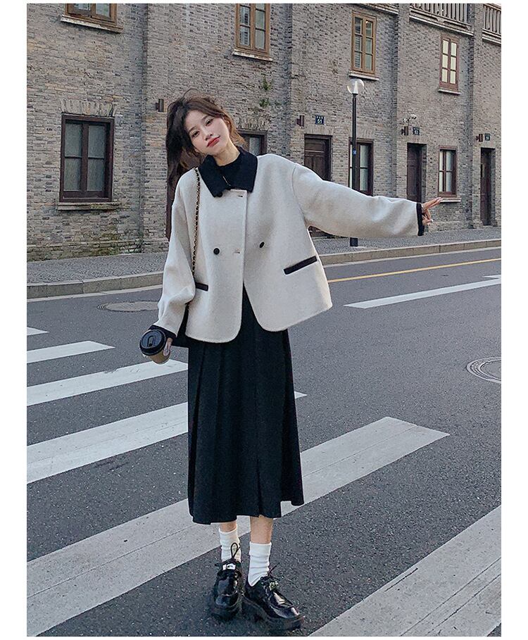 大人可愛いバイカラーのチェスターコート。