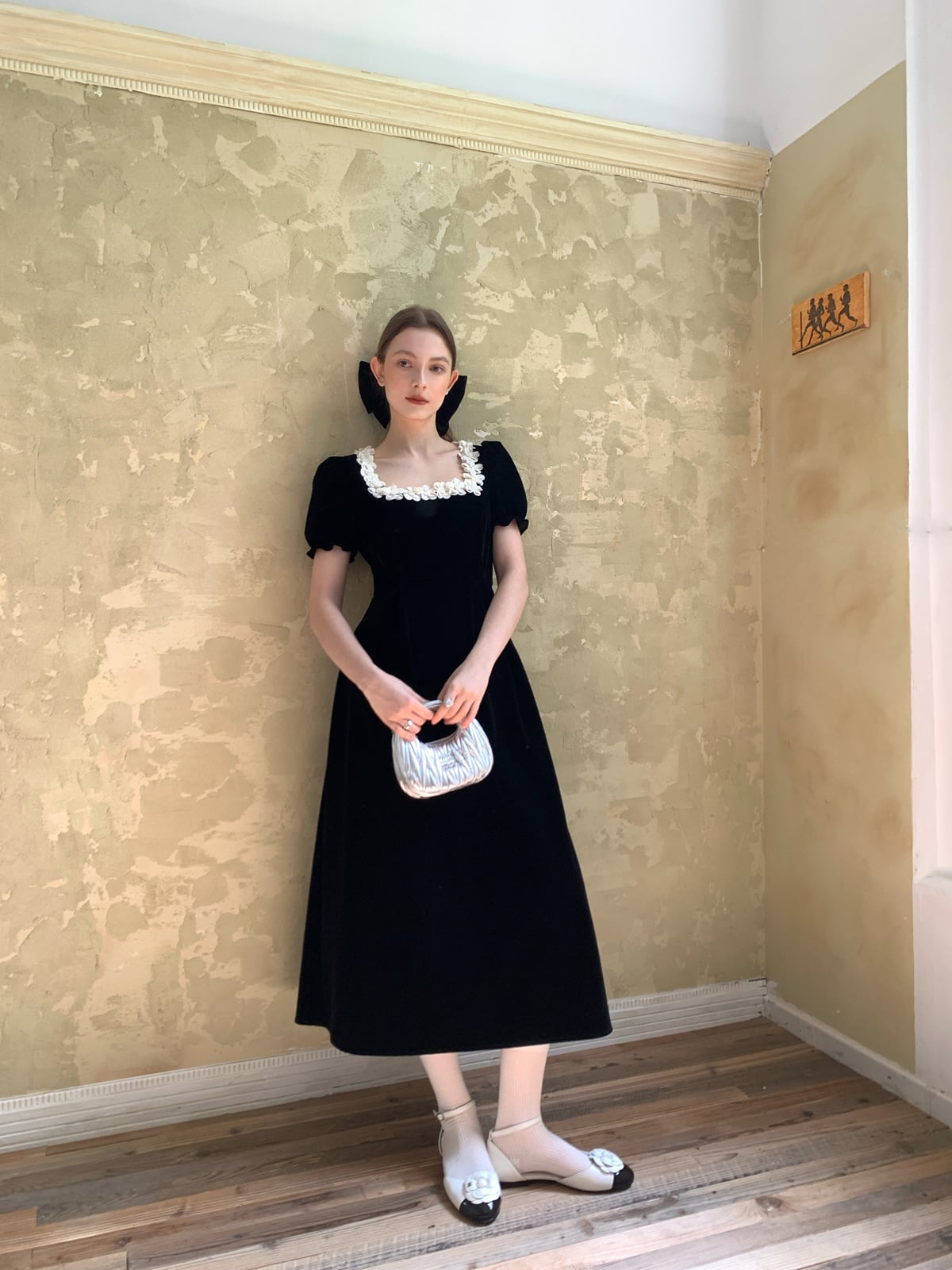 大人エレガントなベルベット素材のパーティードレス。