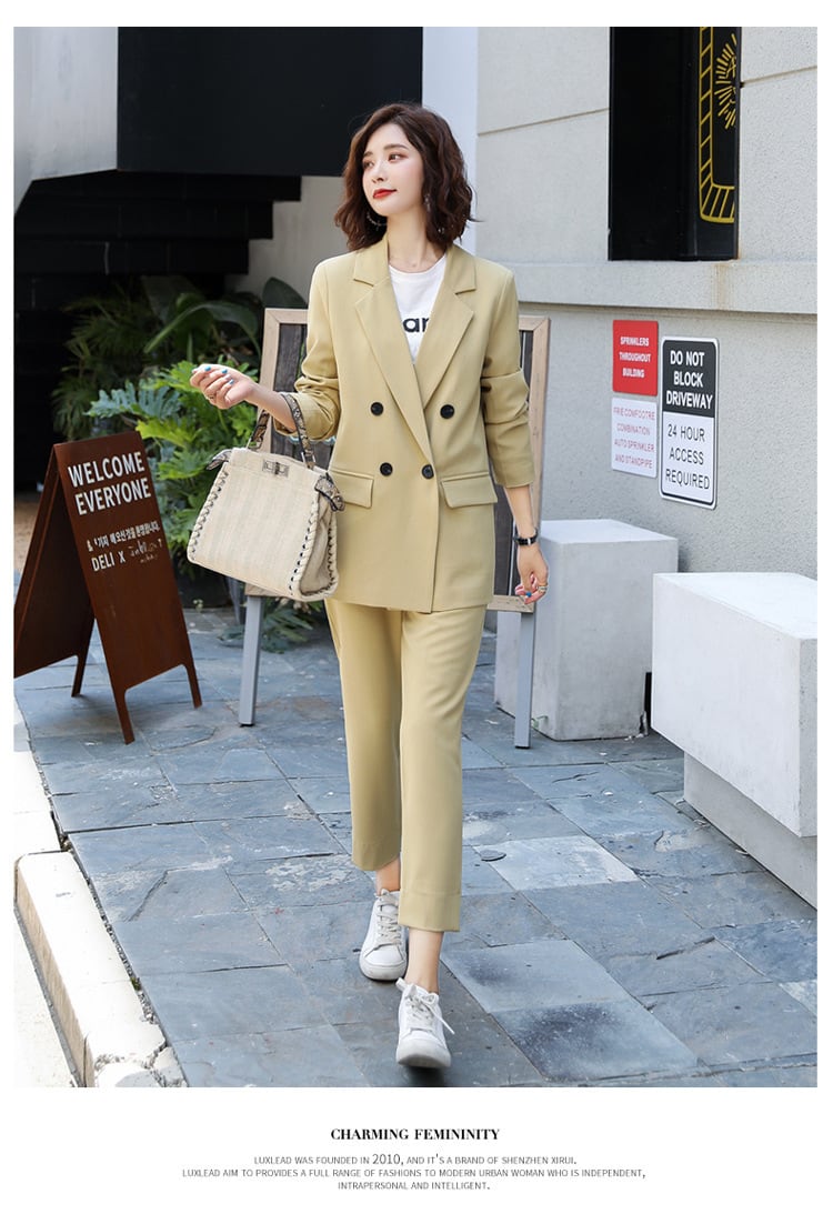 さわやかなカラーリングのセットアップスーツ。
