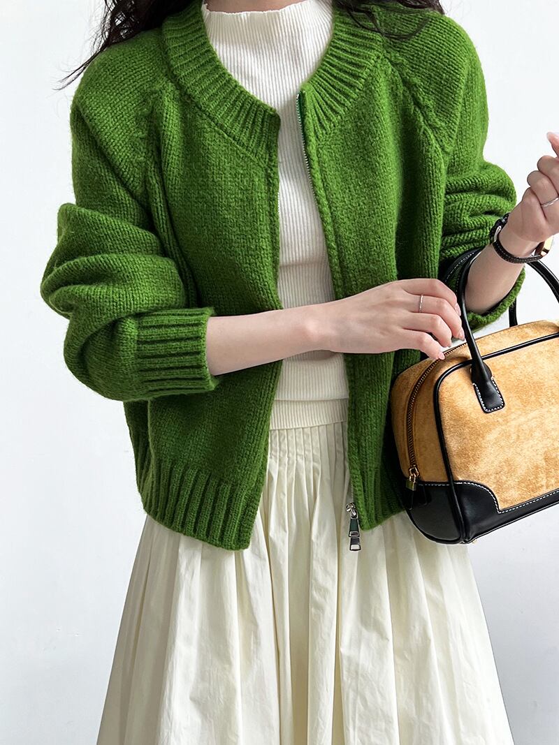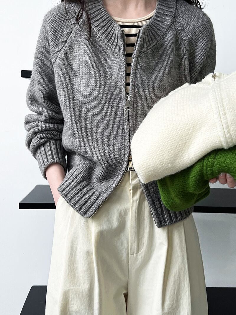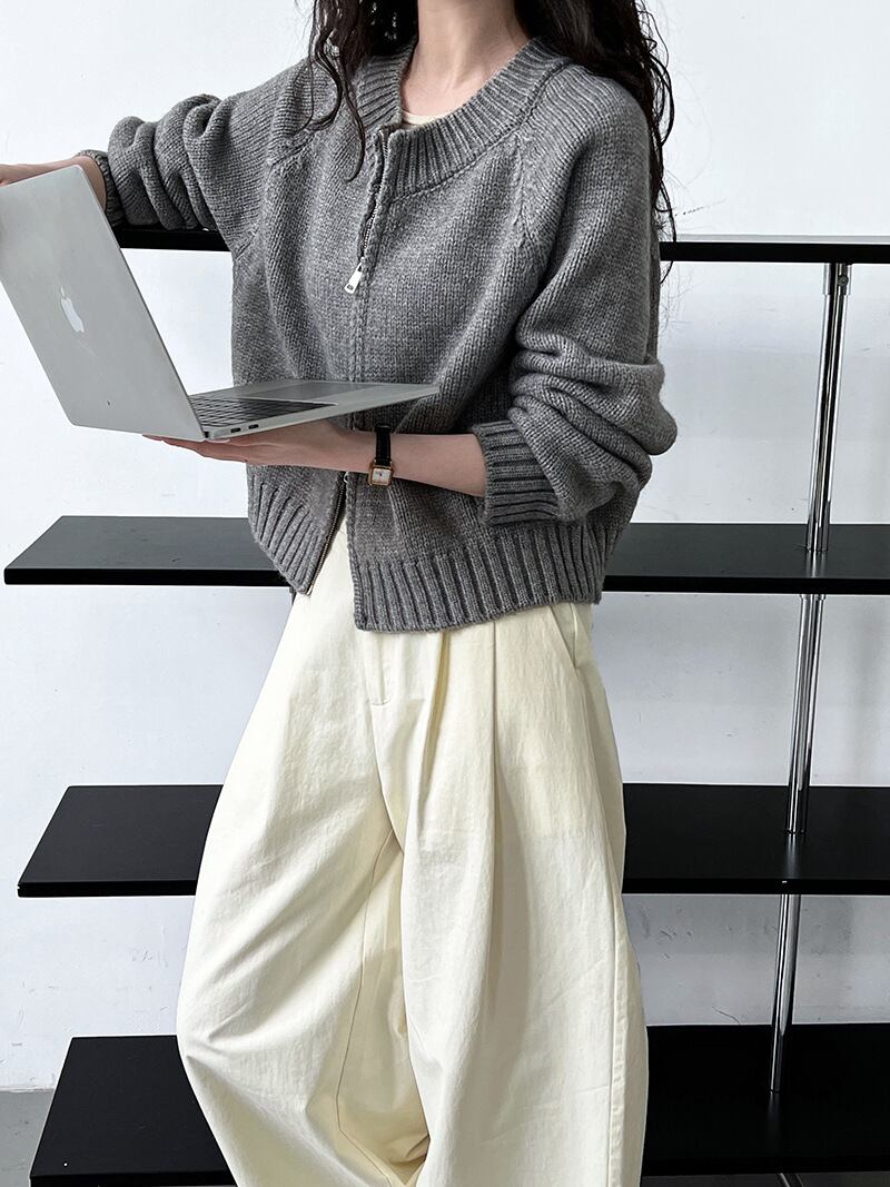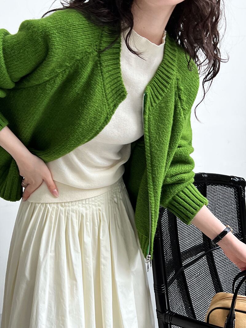 大人可愛いダブルジッパーのコンパクトなカーディガン。