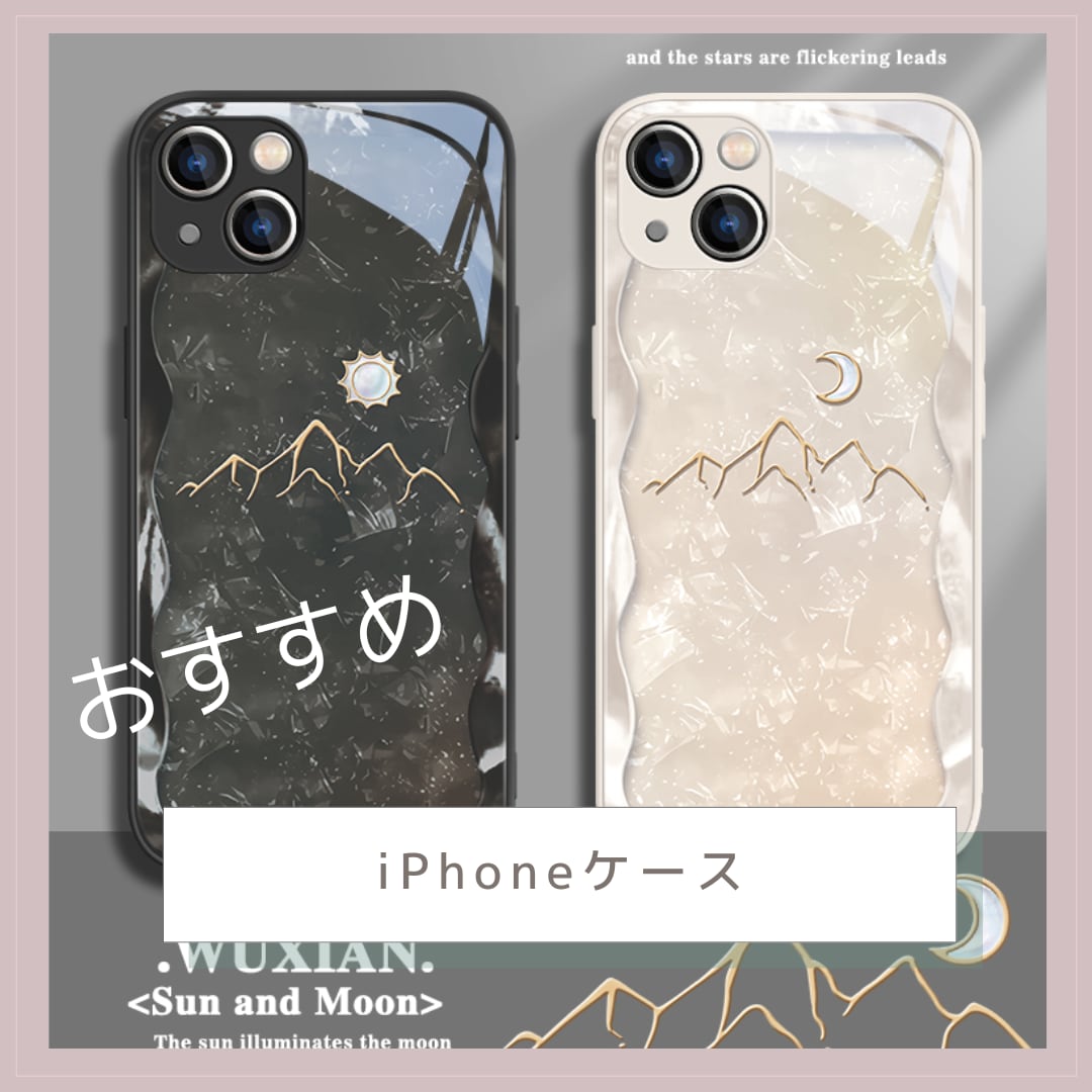 お月様と太陽モチーフが大人可愛いシェル風のiPhoneケース。