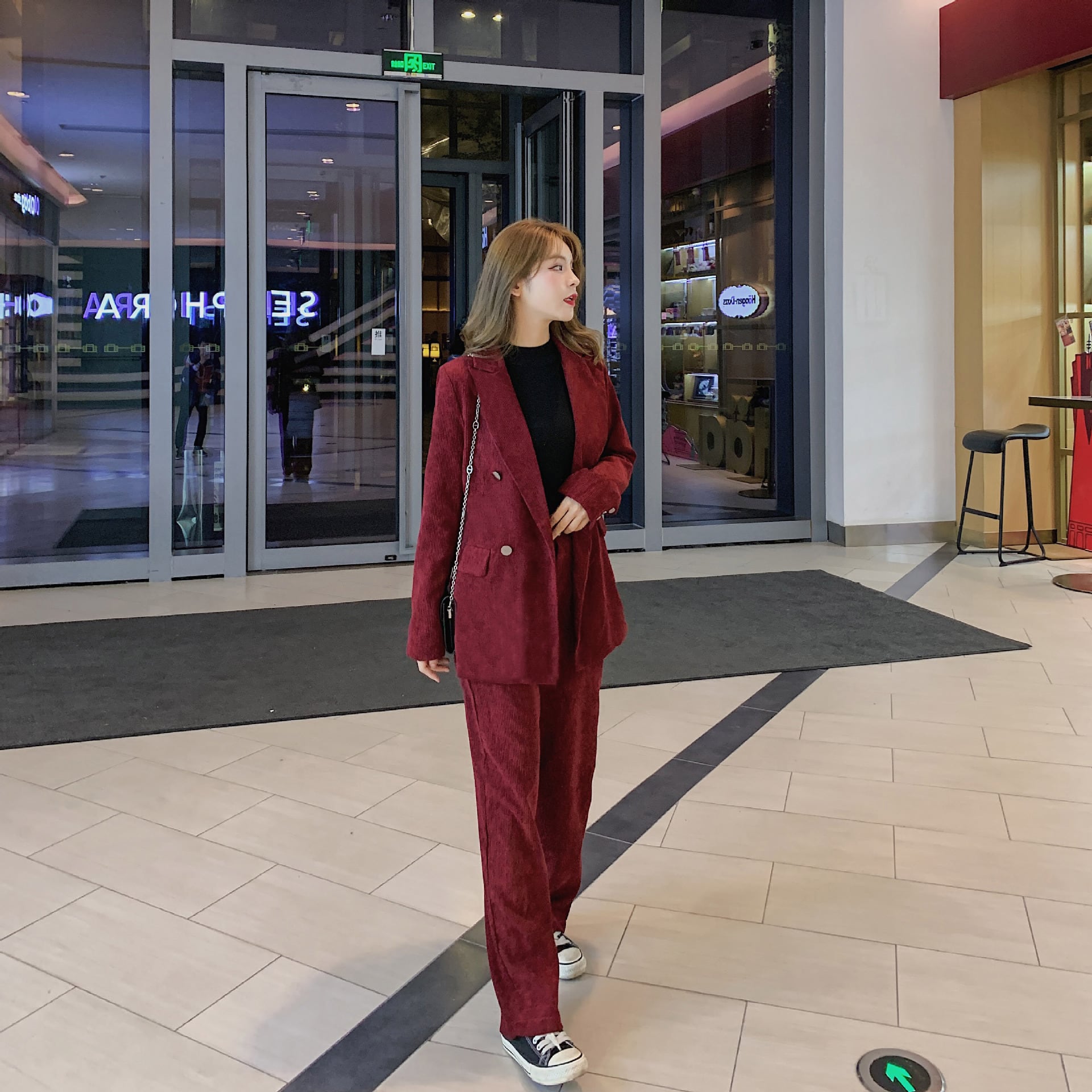 大人カジュアルなコーデュロイのジャケット+パンツのセットアップ。