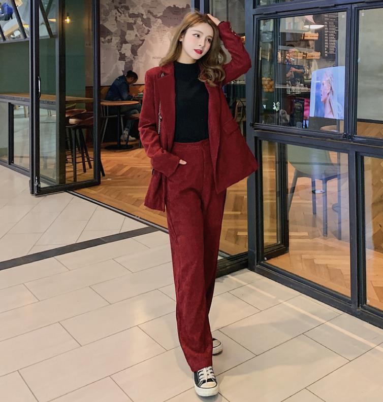 【セットアップ】 コーデュロイ セットアップ レディース おしゃれ ママ パンツ コーデュロイ ジャケット ワイド パンツ 春 秋 冬 20代 30代 40代 きれいめ 大人 可愛い カジュアル ワインレッド 赤 S M L XL