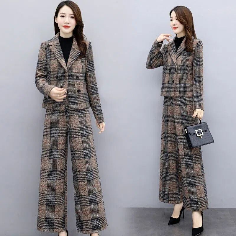 クロップド丈のジャケット+ワイドパンツでスタイルアップ効果も。