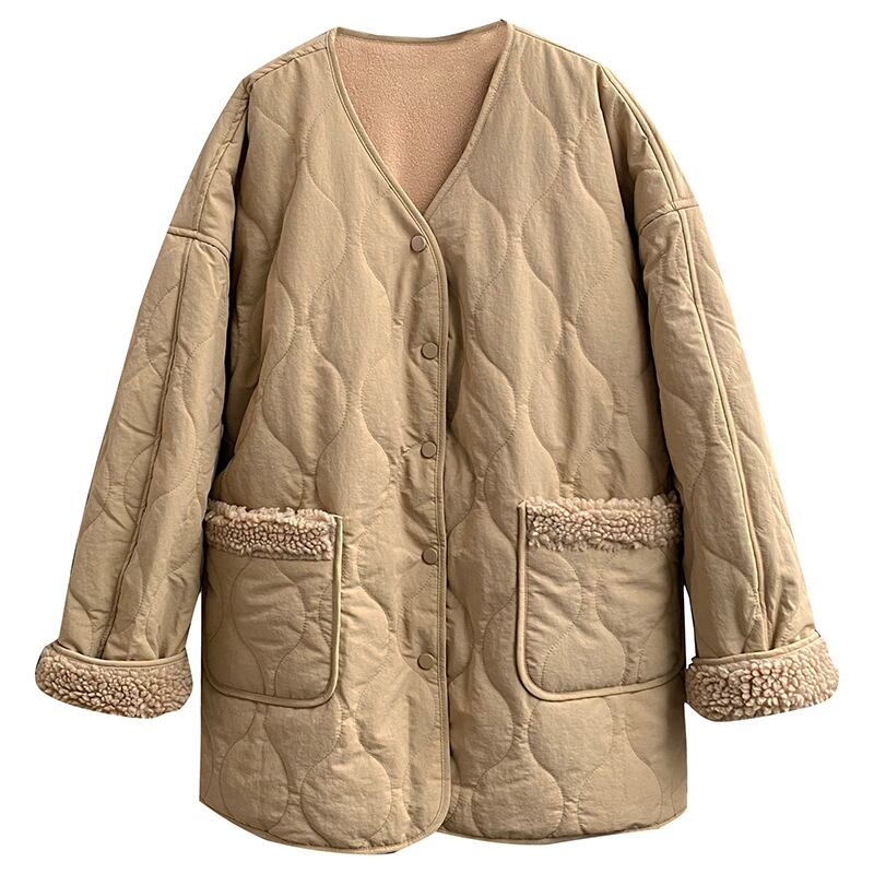 裏ボア素材で防寒効果高めなキルティングジャケット。