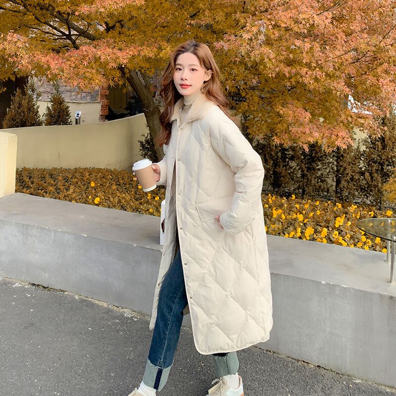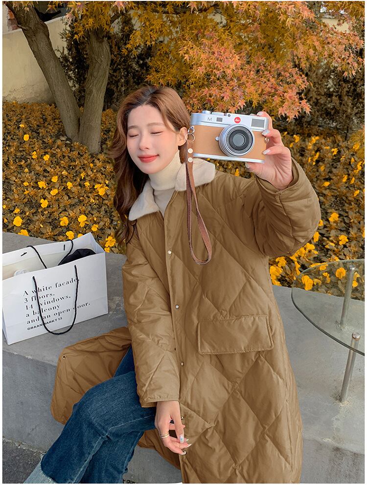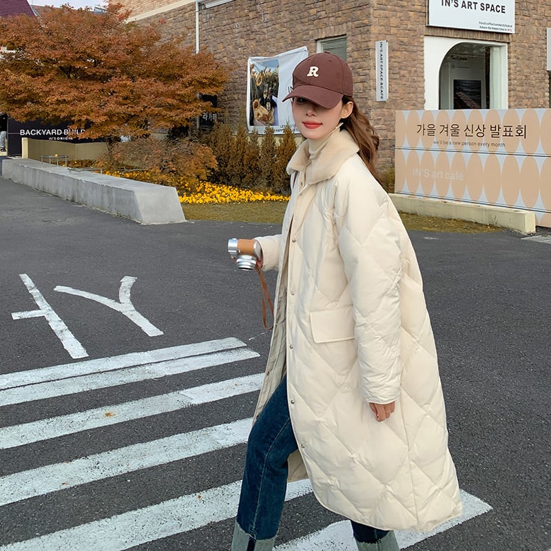大人カジュアルなボア付きミドル丈のキルティングジャケット。