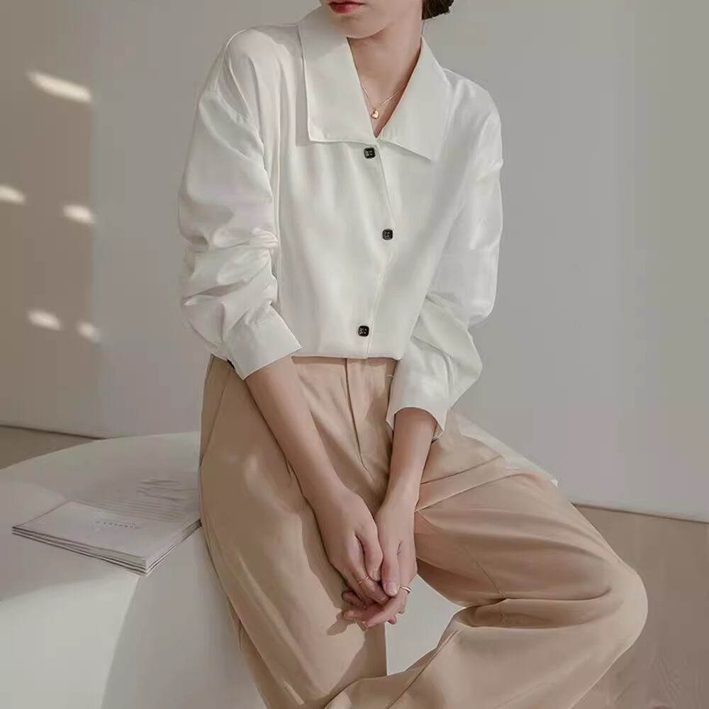 【ブラウス】ブラウス レディース 大人 可愛い トップス 無地 シャツ ブラウス 韓国 ブラウス 春 秋 冬 20代 30代 40代 シンプル オフィス レディース 長袖 フォーマル 体型カバー きれいめ ホワイト 白 S M L XL