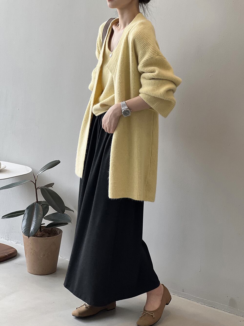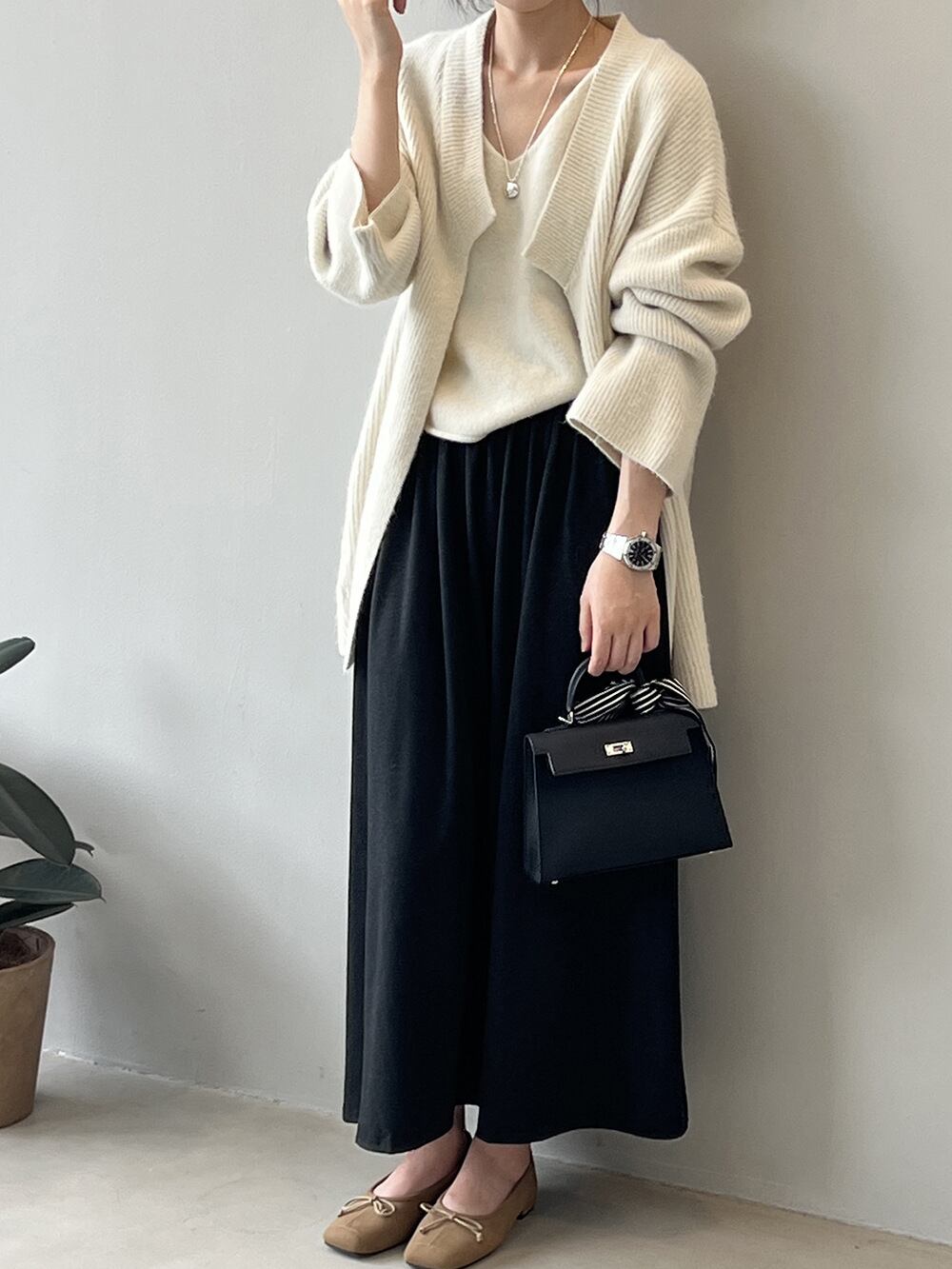 大人エレガントなキャミソール+カーディガンのセットアップ。