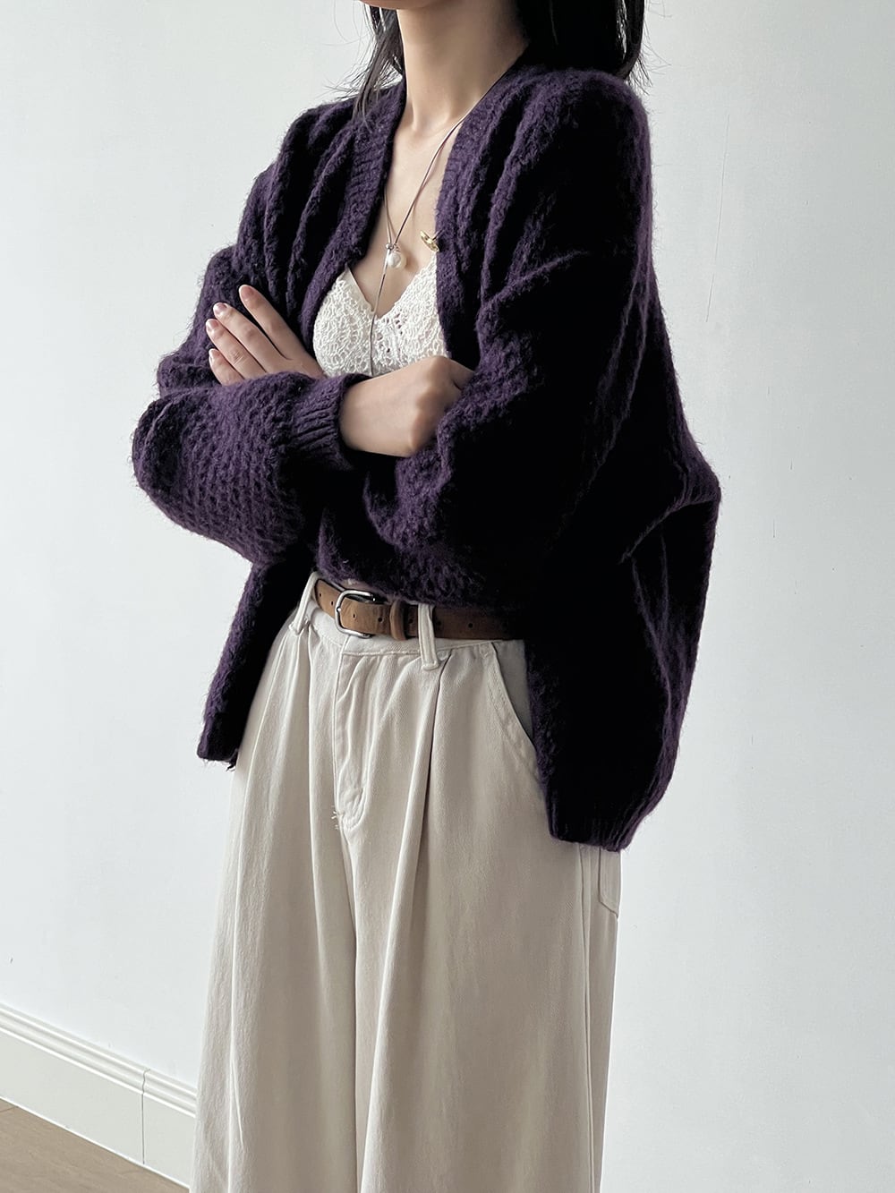 ぽこぽこした編み目が可愛らしいカーディガン。