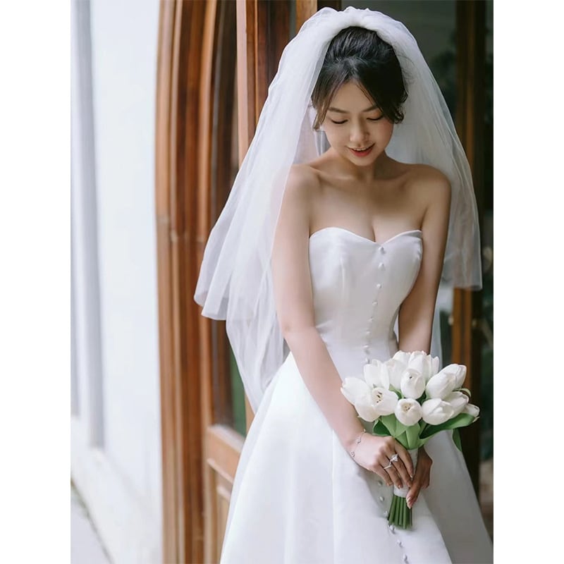 シンプルなベールやヘッドドレスと相性抜群。