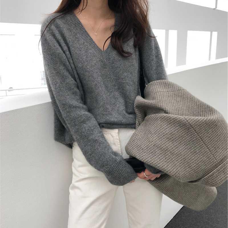 シンプルなvネックニットセーター。