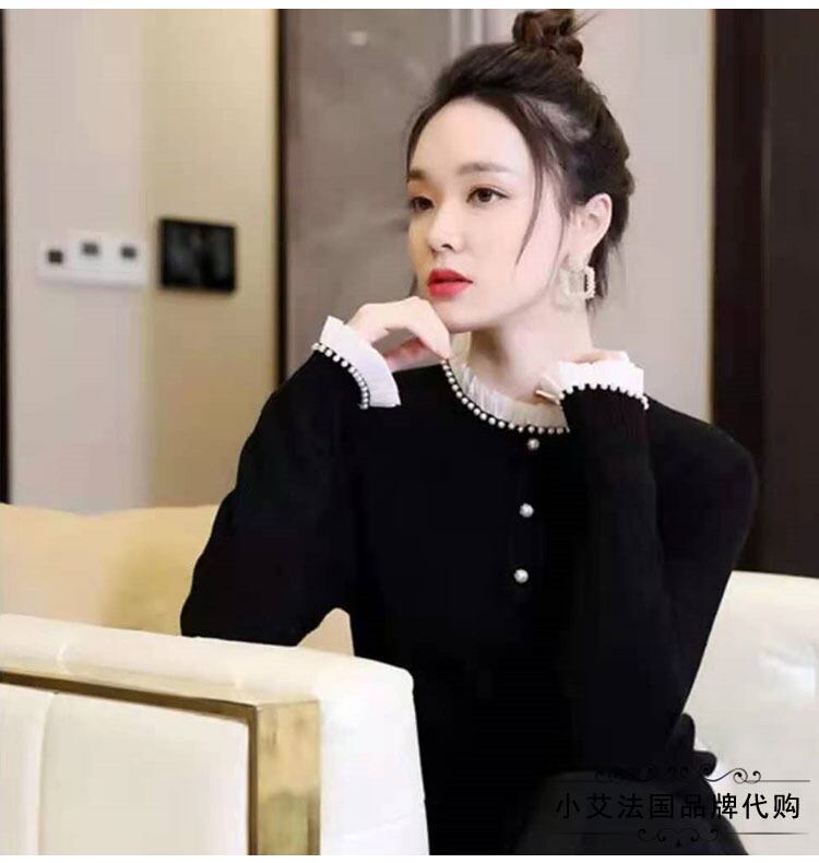スタンドカラーとパールが大人可愛い甘めカーディガン。