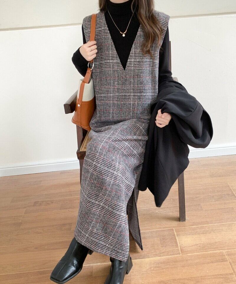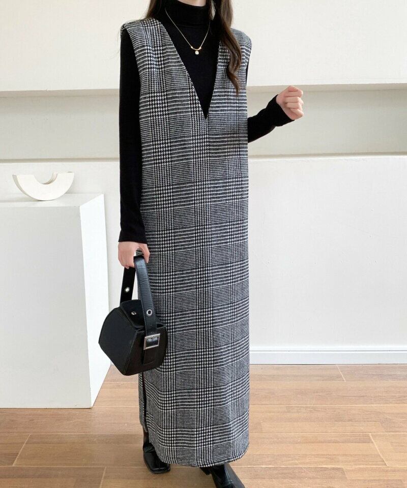 すとんと縦に落ちるiラインシルエットで細見え華奢な印象に。