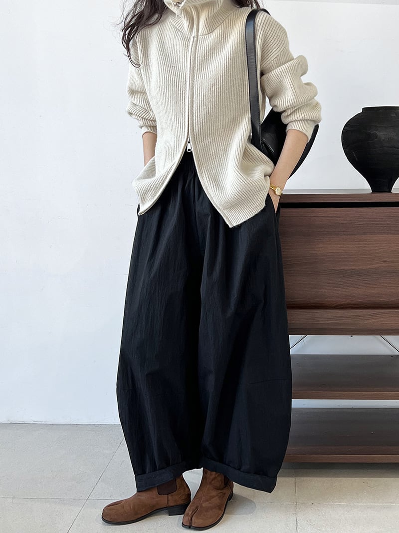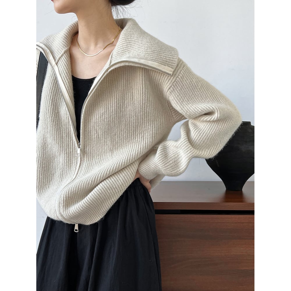 ジップを襟で止めたり上まで上げたり気分で着こなしできる。