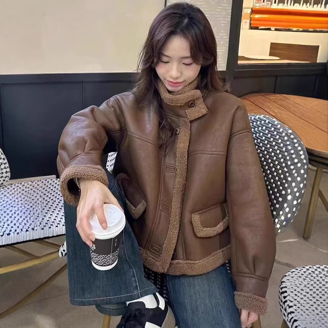 【コート】ムートンコート レディース きれいめ アウター ショート 秋 冬 20代 30代 40代 可愛い韓国 カジュアル ブラウン ブラック 黒 M L XL