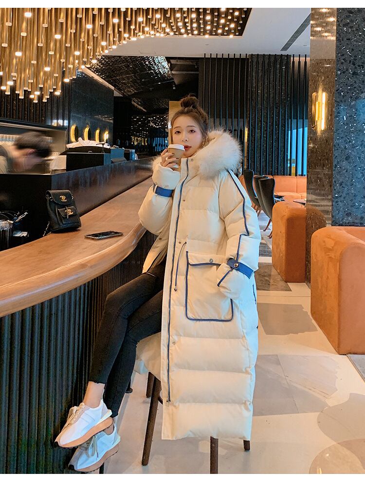 パイピングが大人カジュアルなロング丈のダウンジャケット。