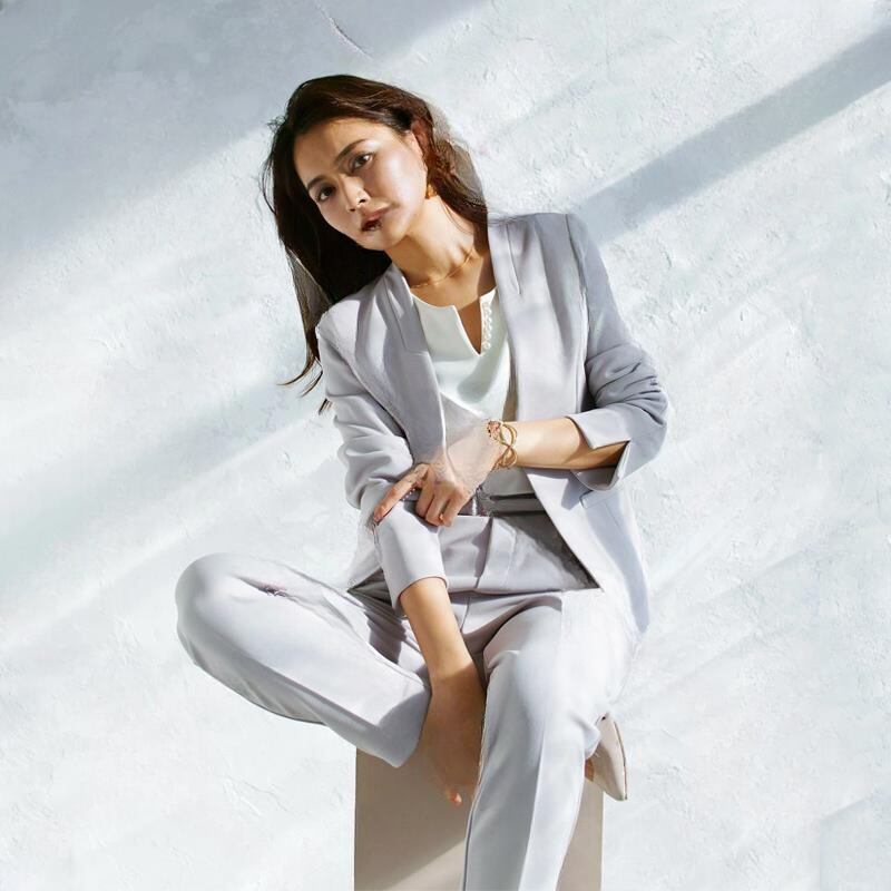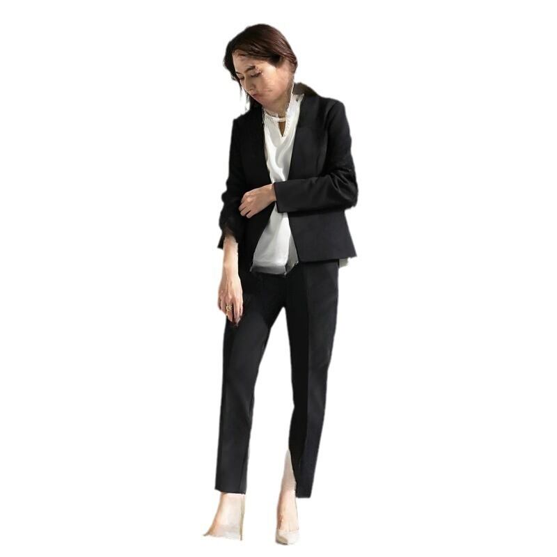 大人エレガントでシンプルなジャケット+テーパ土パンツのセットアップ。