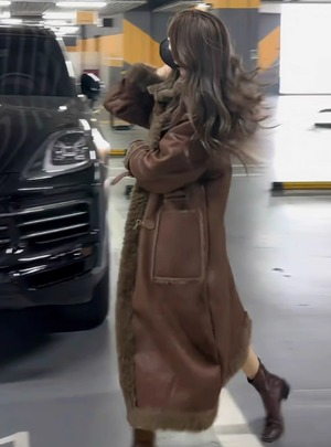 大人可愛いロング丈のムートンコート。
