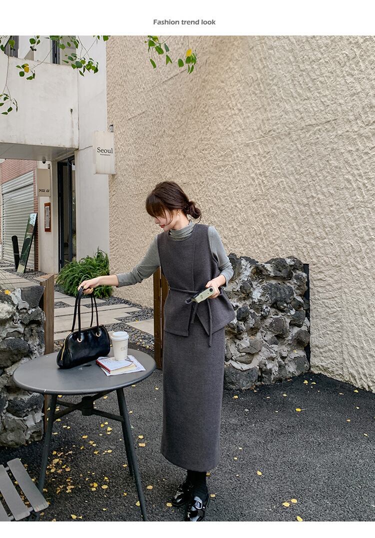 大人可愛いトップス+ジレ+スカートのセットアップ。