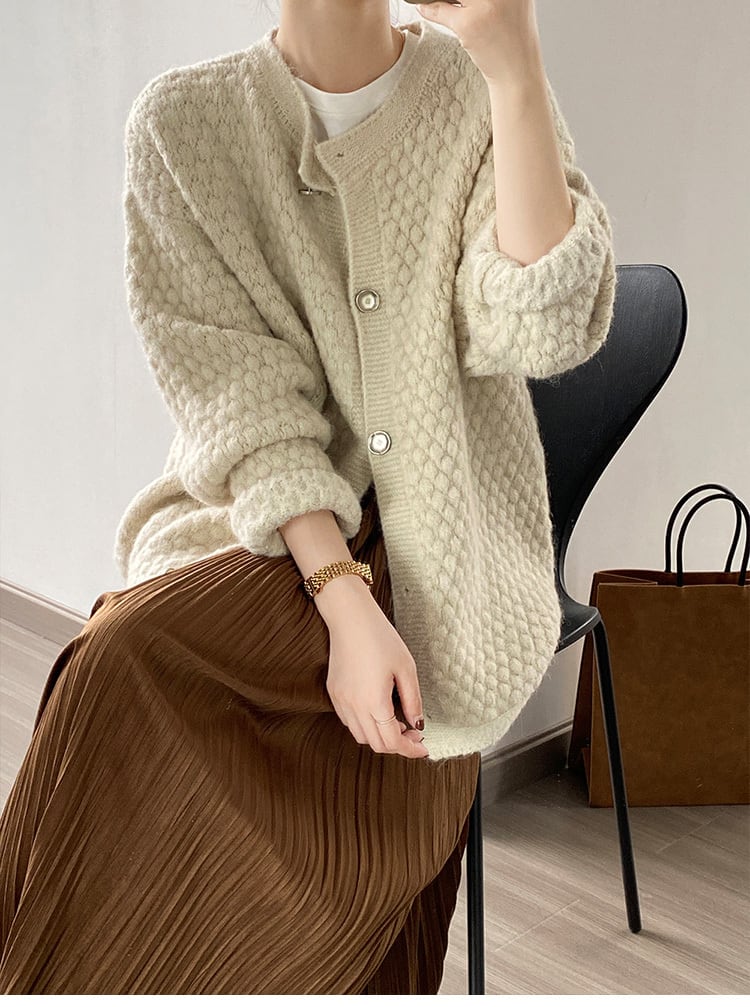 ぽこぽこした生地感の大人可愛いカーディガン。