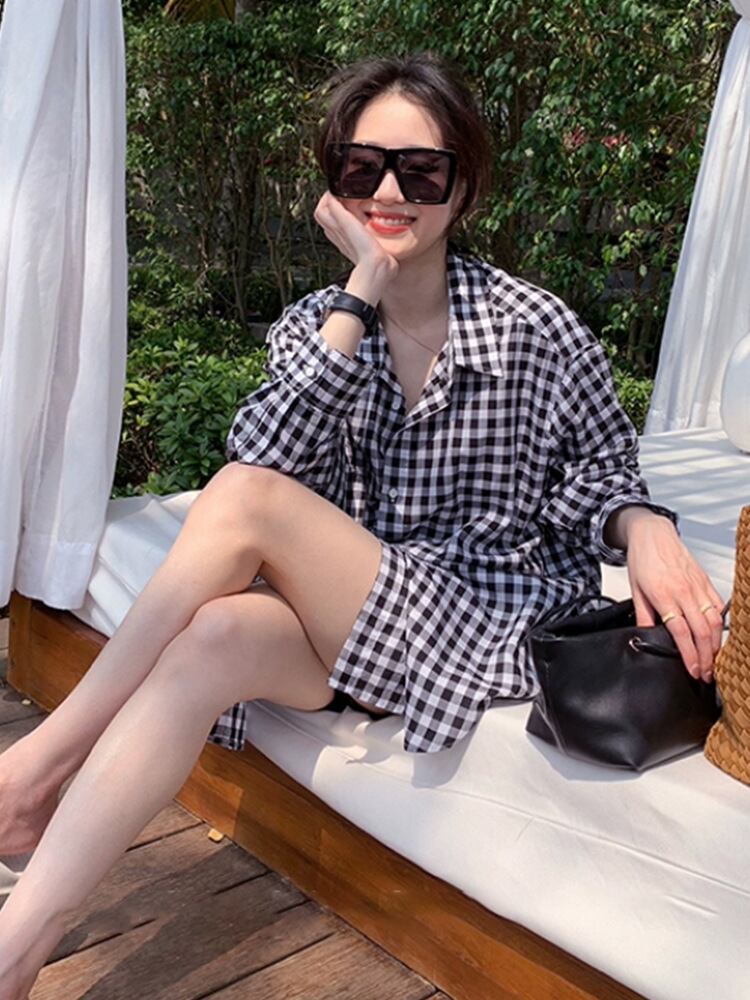 羽織にも一枚で着てもサマになるシンプルなギンガムチェックシャツ。