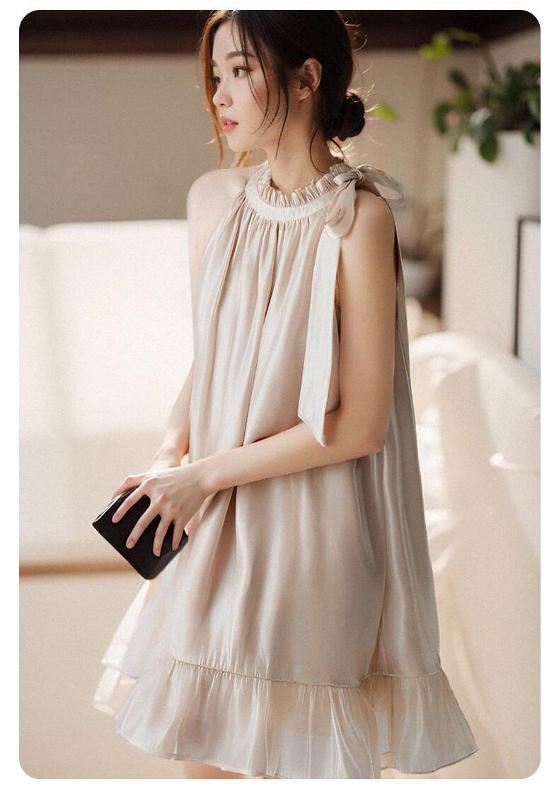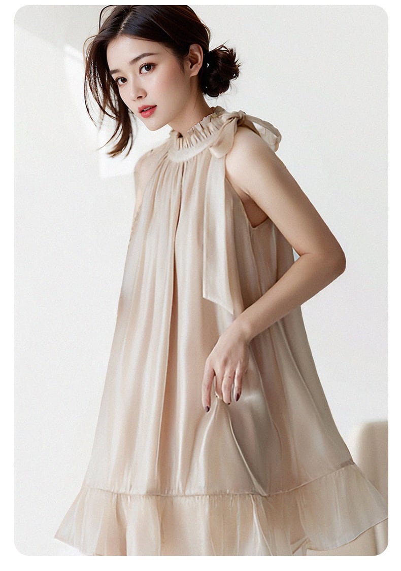 大人可愛いノースリーブのミニ丈パーティードレス。