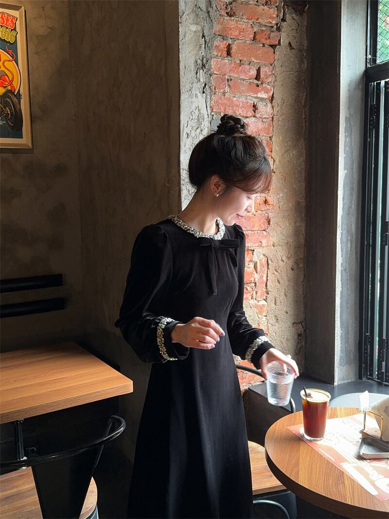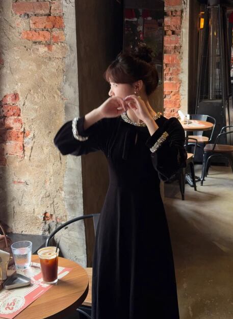 秋冬のパーティーシーンに映えるベルベット素材で高見え効果。