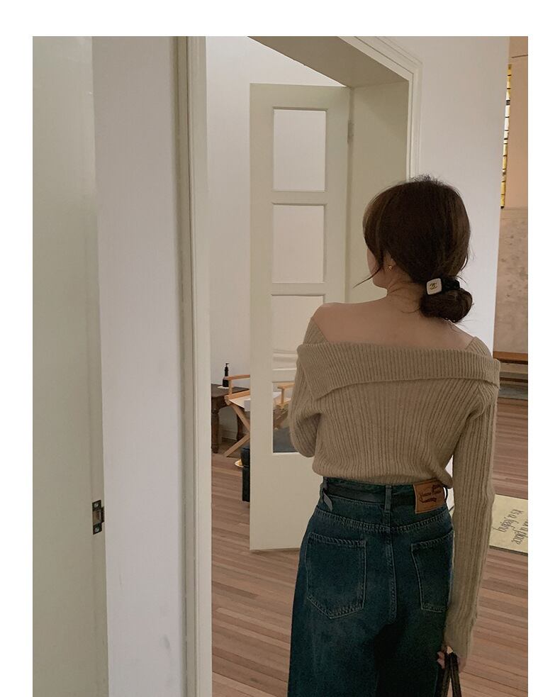大人可愛いワンショルダーのニットセーター。