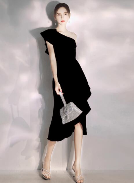 ワンショルダーで肩ライン&デコルテラインを美しく華奢見せ。