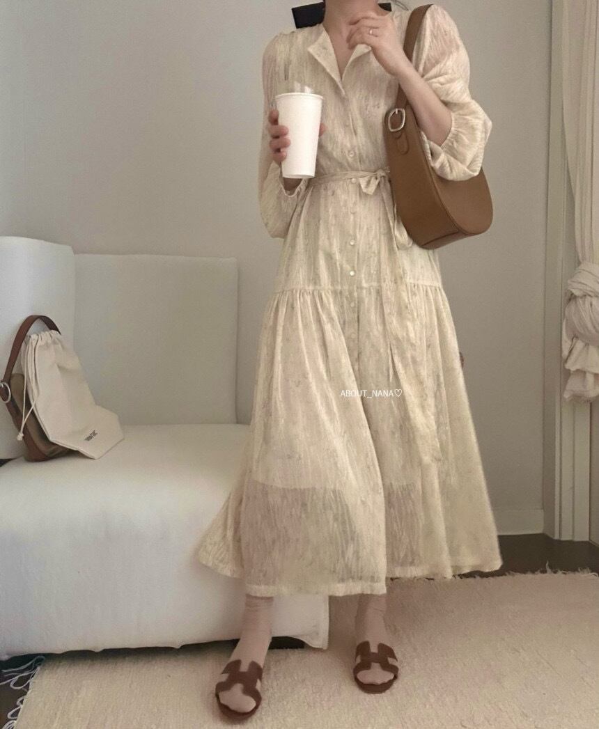 ウエストのリボンを結わくことで気になるお腹まわりをすっきり見せる。