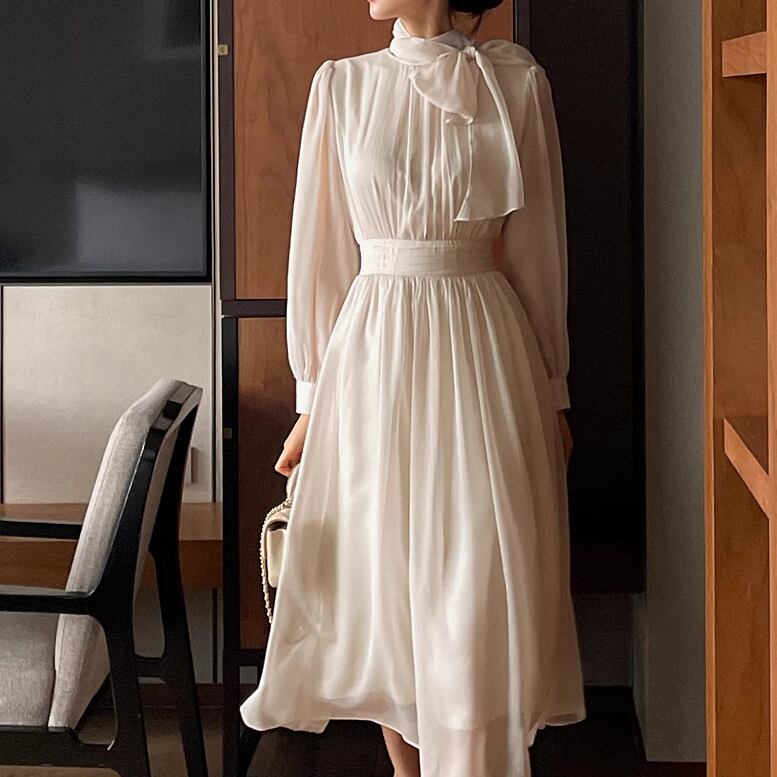 お首まわりのリボンが女性らしくフェミニンな印象に。