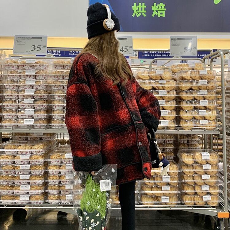大人カジュアルなチェック柄のオーバーサイズボアコート。
