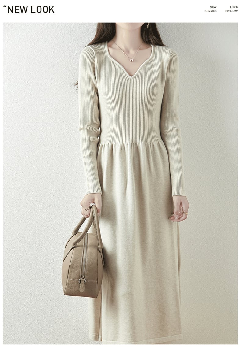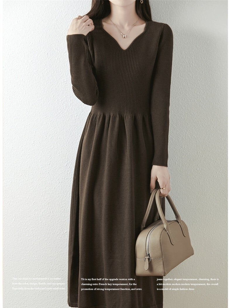 【ワンピース】 ワンピース レディース おしゃれ きれいめ 可愛い 春 秋 冬 ワンピース 20代 30代 40代 花柄 ロング ワンピース 春 秋 冬 ニット ワンピース 長袖 韓国 ワンピース ブラウン ベージュ オフホワイト 白 ダークグレー ブラック 黒 S L