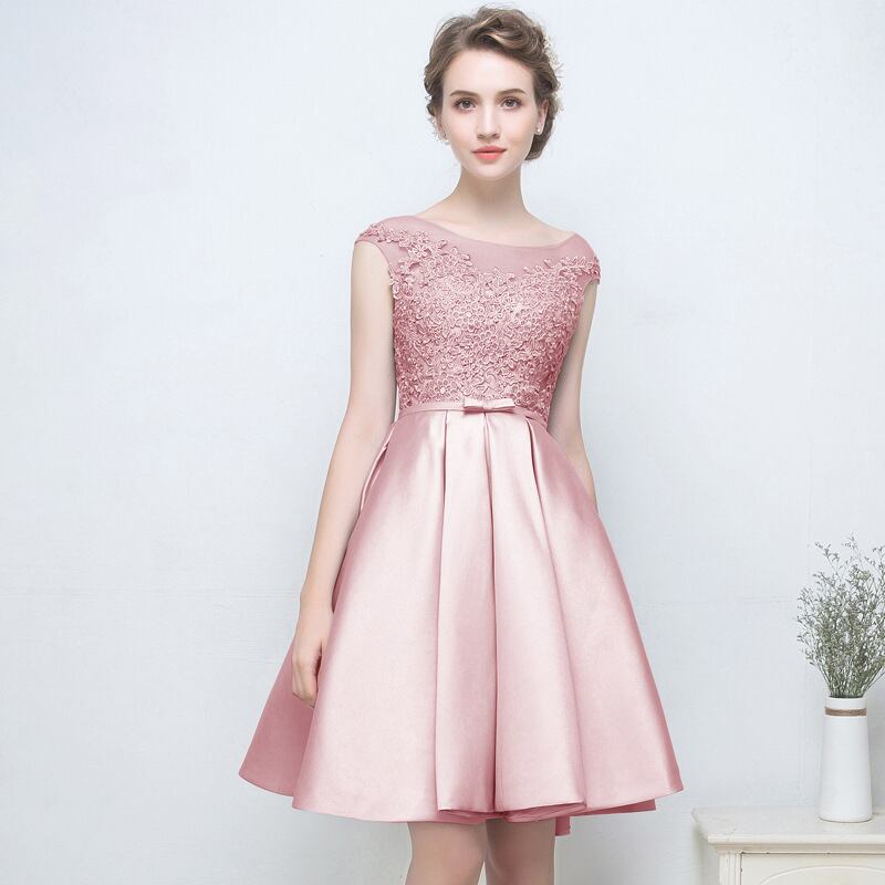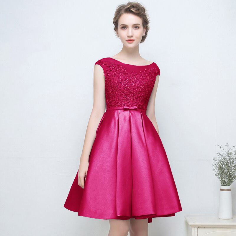 ハリのあるサテン生地のエレガントなパーティードレス。