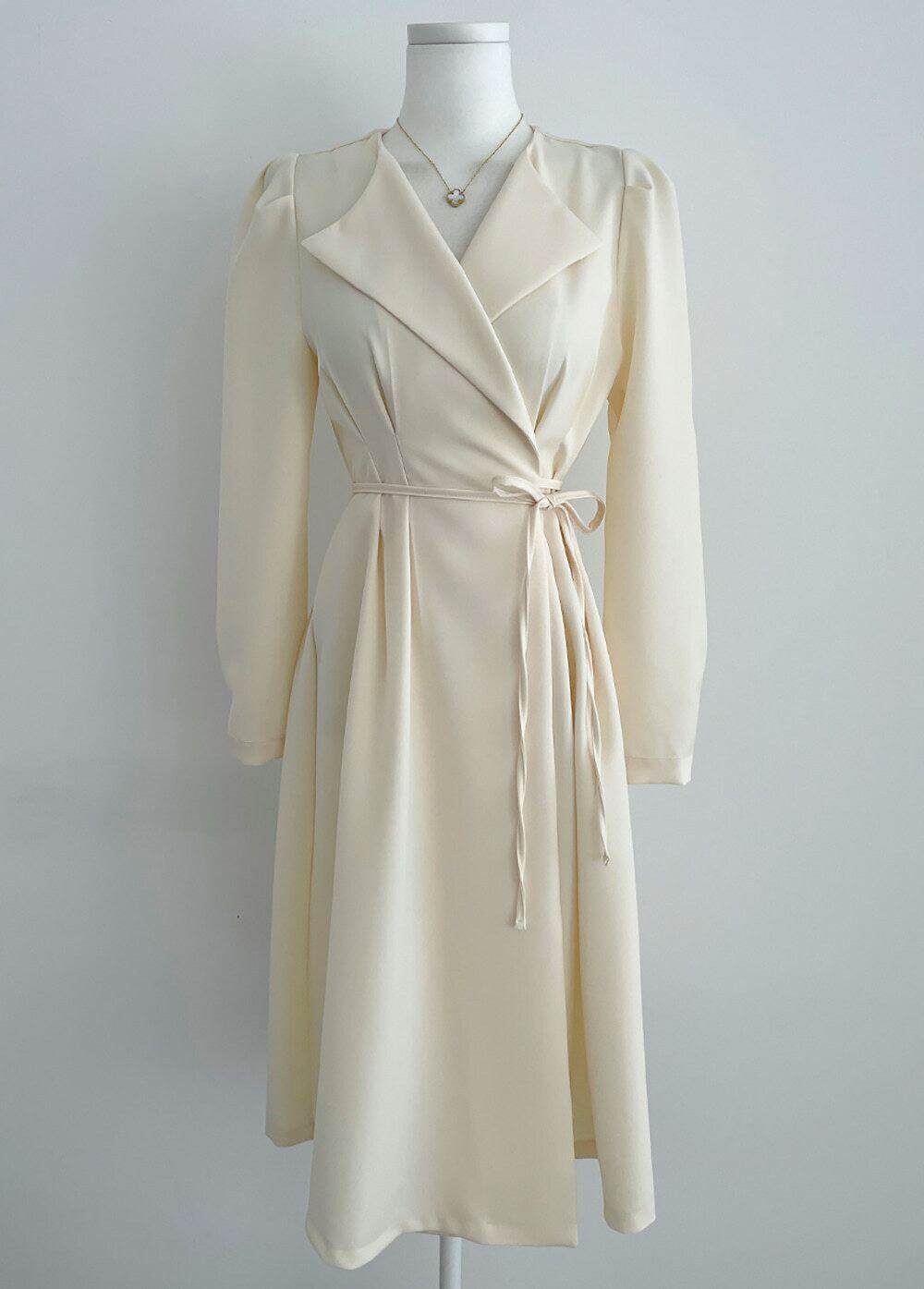 淡い色合いの大きな襟がアクセントのシャツワンピース。