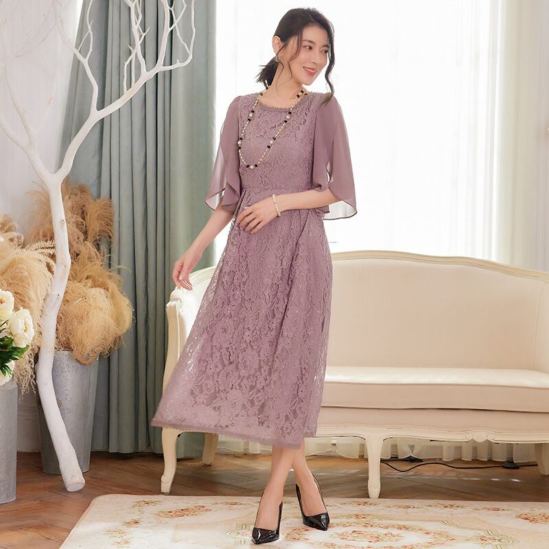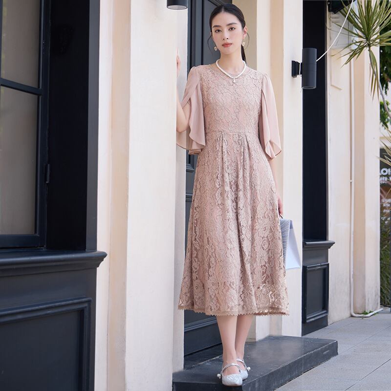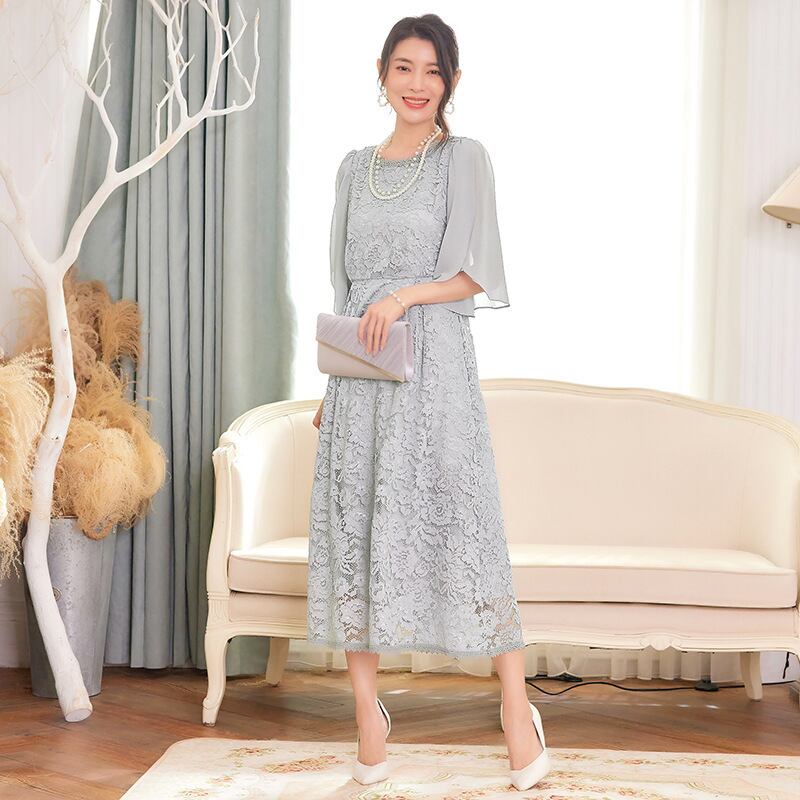 総レースとケープ風のお袖で気になる二の腕をカバー。