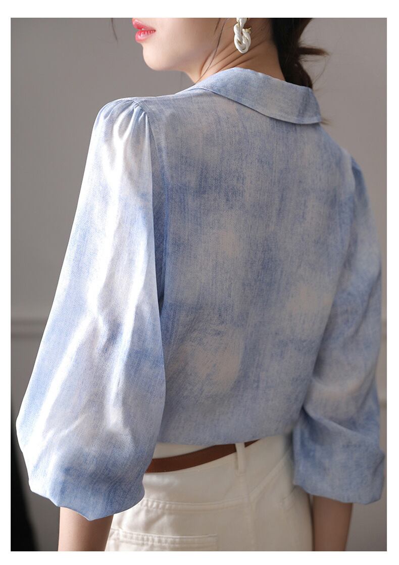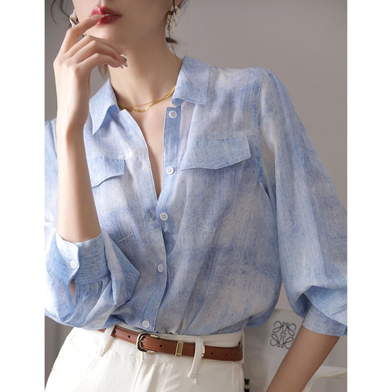 大人エレガントな水墨画風の人気のブルーシャツ。