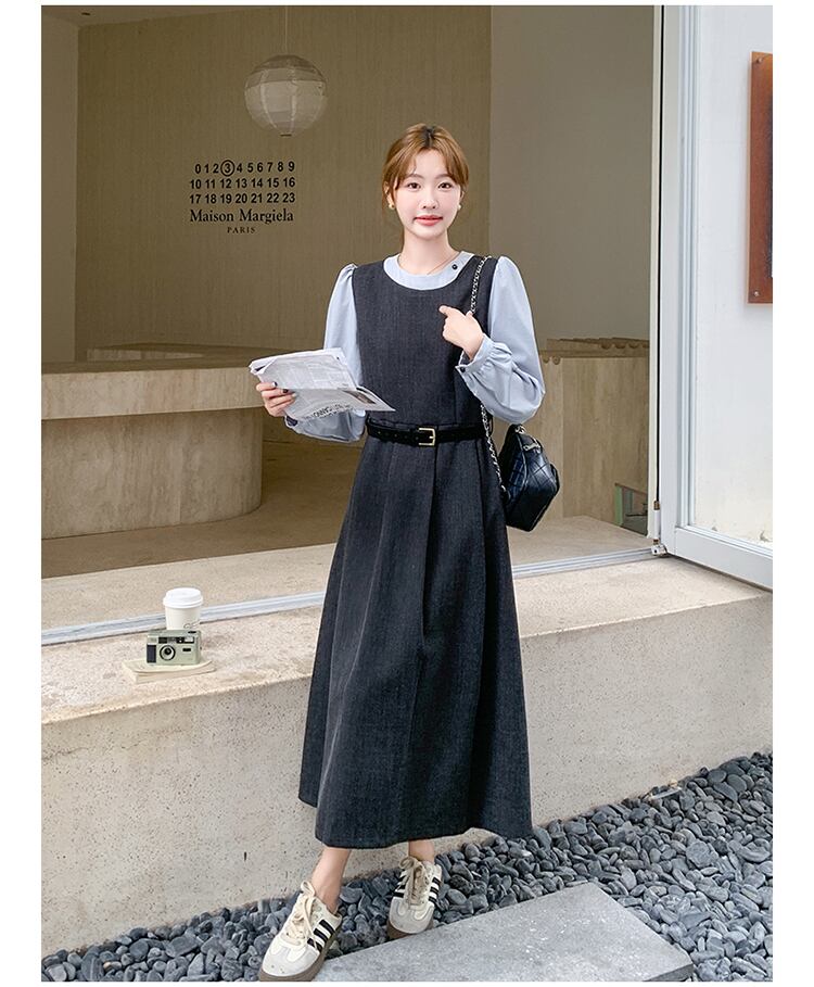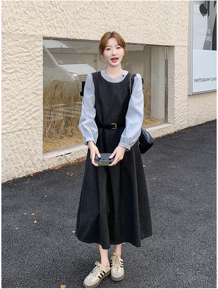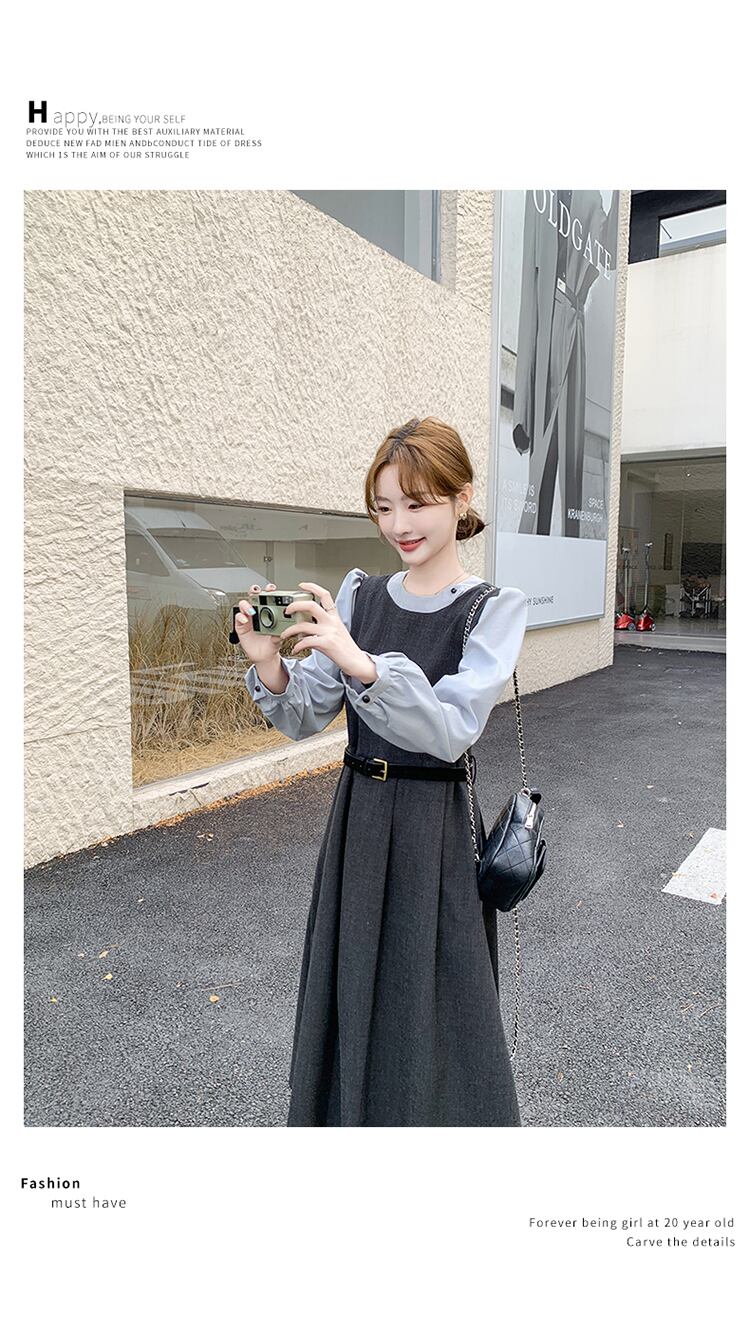 【ワンピース】 ワンピース レディース おしゃれ きれいめ 可愛い 春 秋 冬 ジャンパースカート ワンピース 20代 30代 40代 ロング ワンピース 長袖 韓国 ワンピース グレー S M L XL
