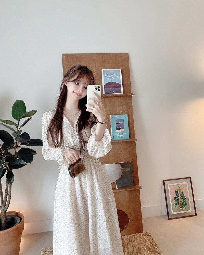【ワンピース】 ワンピース レディース おしゃれ きれいめ 可愛い 春 秋 冬 ワンピース 20代 30代 40代 花柄 ロング ワンピース 長袖 韓国 ワンピース ブラック 黒 アプリコット S M L XL