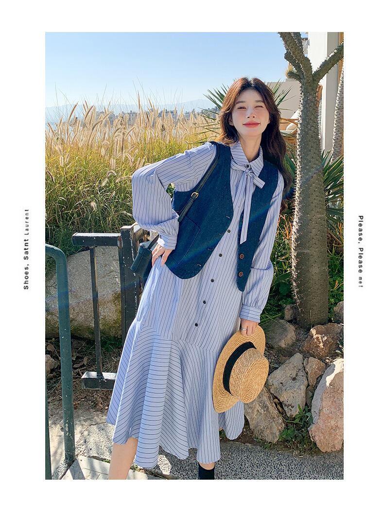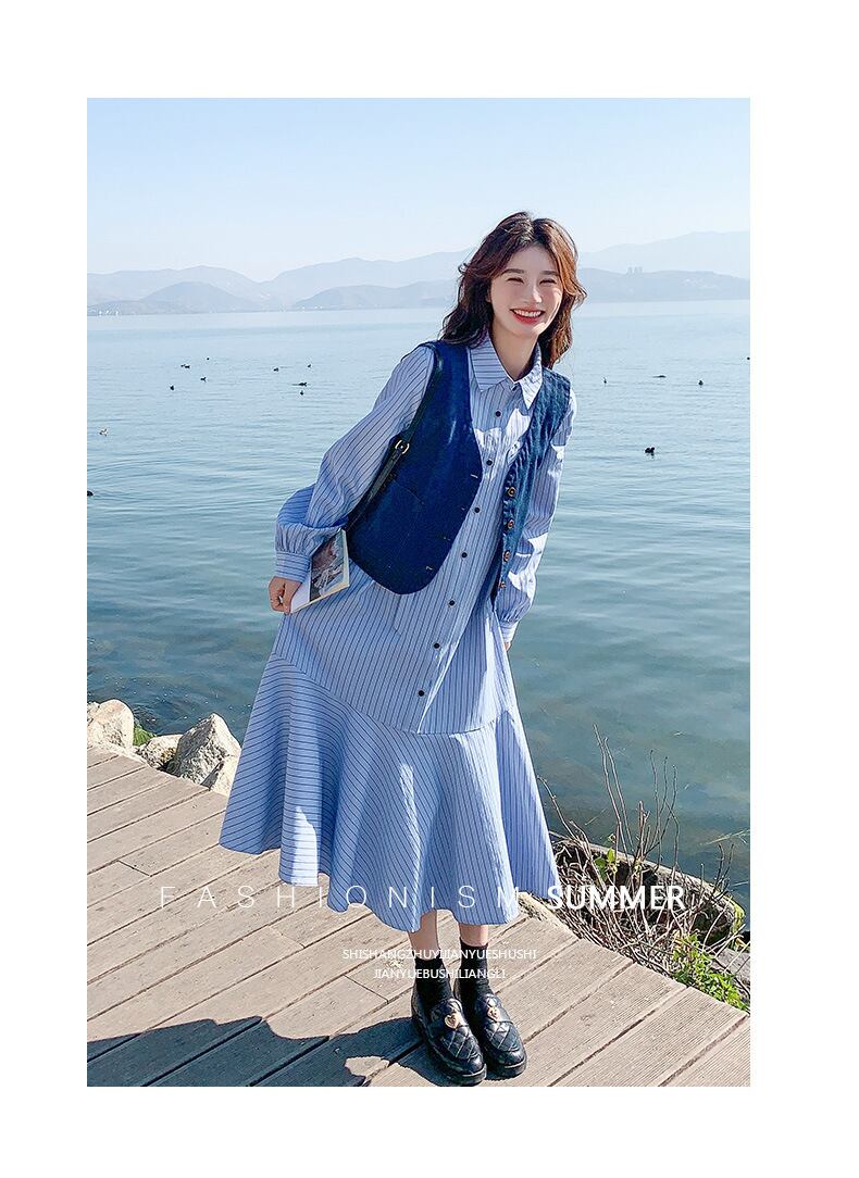 【セットアップ】セットアップ レディース おしゃれ ママ マーメイド ワンピース デニム ベスト 春 秋 冬 20代 30代 40代 きれいめ 可愛い 2点セット 水色 S M L XL