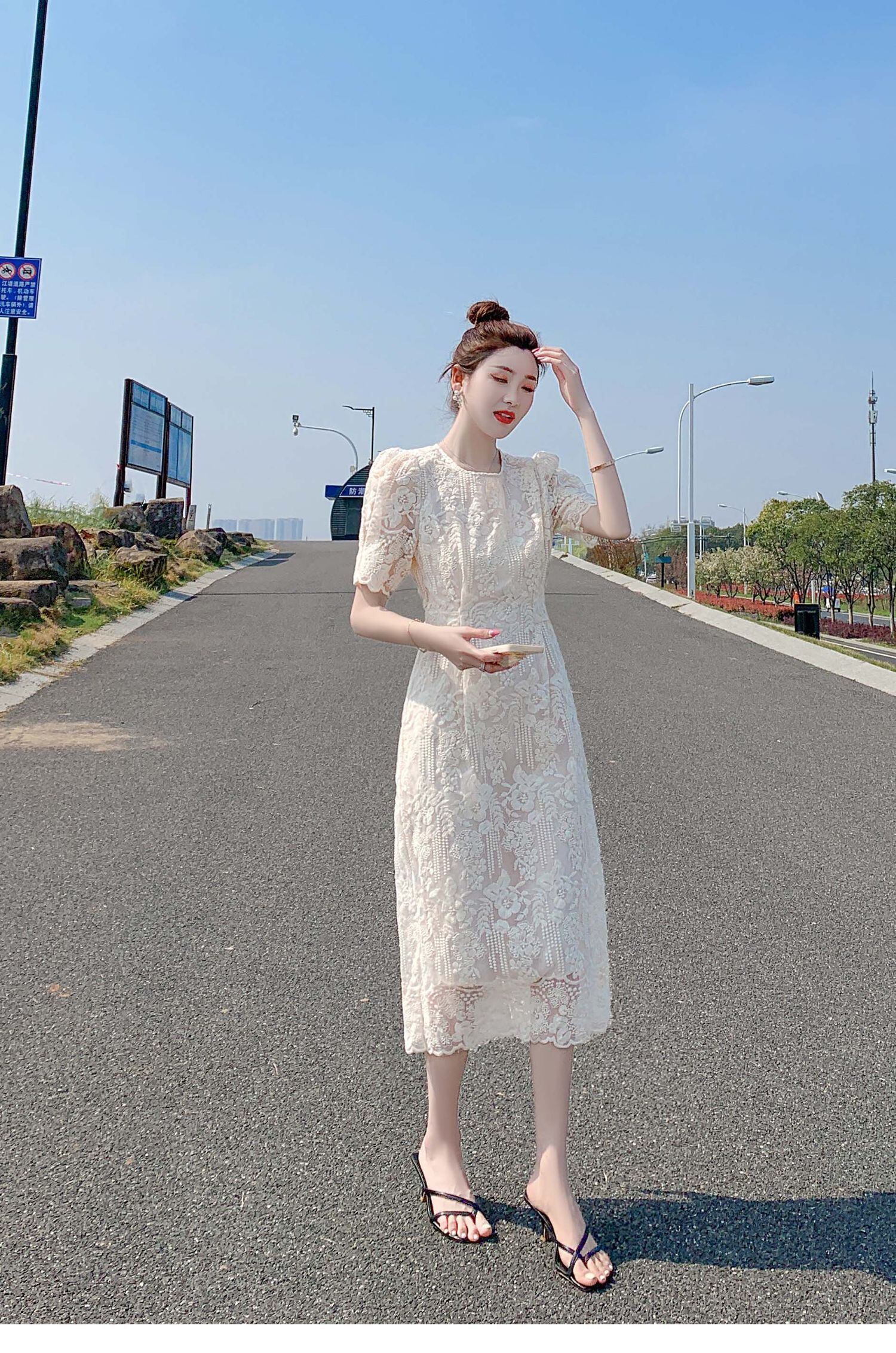 【ワンピース】 ワンピース レディース おしゃれ きれいめ 可愛い 春 夏 秋 ワンピース 20代 30代 40代 ミモレ ワンピース 半袖 韓国 ワンピース ホワイト 白 ブルー 青 水色 S M L XL