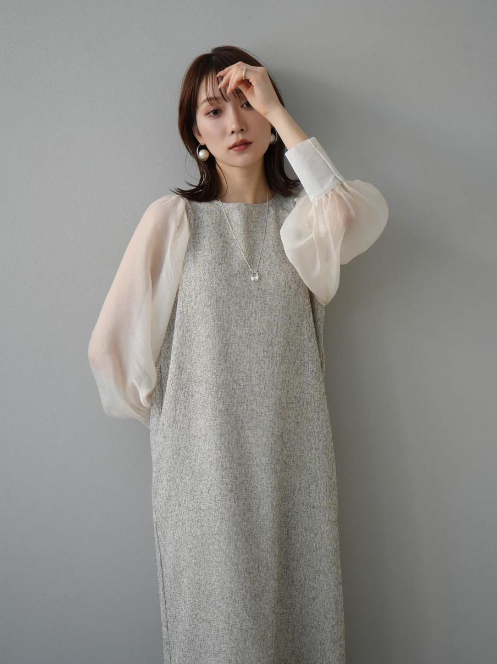 ボリューミーな異素材の透け感あるお袖が女性らしさをプラス。